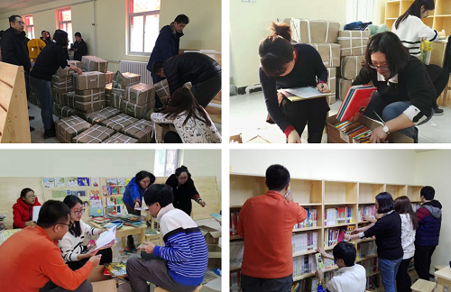 这排有些破落的平房就是要建立的图书馆,走进平房,里面的环境与外观截然不同:淡绿色的墙,瓷砖的地板,敞亮的空间里散发着实木的芬芳,书架,书桌,座椅还未码放,图书们静静地堆放在一起。在图书馆内,我们见到了段英老师,段英老师是然尔阅读公益发展中心的创始人,一年多来,然尔中心共投入30多万元,为阜平镇10所学校组建图书馆、图书角,捐赠1万多册图书,惠及近8000名学生。本次实践活动的重要内容就是同段英老师以及然尔公益的志愿者完成城厢中学图书馆的建设。简单的相互介绍后,大家便开始行动:码放并擦拭书架、书桌、座椅;将图书拆封、分类、贴标签、上架。实践团共手写4522本图书的标签,对面数量庞大的图书,在然尔志愿者的配合下,经过8个小时的分类、查找和整理,最终完成了城厢中学图书馆的建设,上架完毕已接近晚上10点,大家虽然很疲惫,但看到整齐的图书馆,心中尤为的自豪。