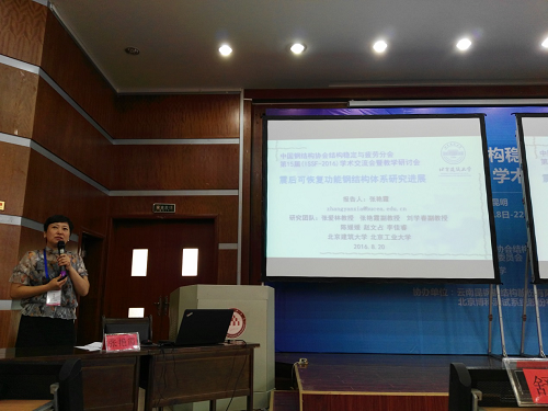 张艳霞副教授在大会报告环节作《震后可恢复功能钢结构体系研究进展》的报告,代表研究团队介绍了震后可恢复功能预应力钢框架结构的优势及研究成果。该研究获得国家自然科学基金面上项目支持,已发表Engineering Structures等3篇SCI论文及《土木工程学报》、《建筑结构学报》等权威期刊论文多篇。