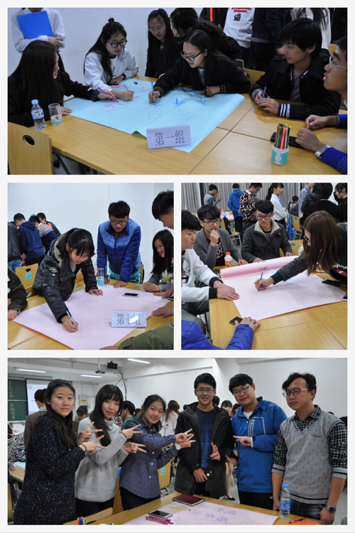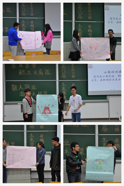 在老师、优秀学生代表发言结束后,为让各学生骨干树立团队精神,建立大局意识、服务意识和协调意识“三识”,各骨干根据先前分好的组别开始进行本次开班仪式最重要的环节---小组对对碰,在活动中,各骨干们为设计出有想法、有创意的小组海报,可谓八仙过海,各显神通。在展示环节中,第四组组长团委办公室主任吴斌将学生工作与雷锋精神结合,希望所有骨干都拥有老师之前所提及的服务意识,在之后的工作中为学生群体献出一份自己的力量。