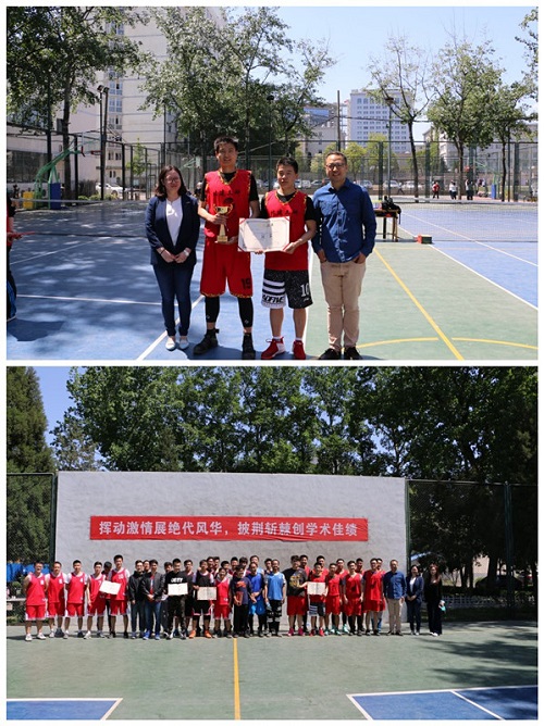 四月的北京草长莺飞、春意盎然;四月的建大鸟语花香、桃李芬芳;四月的篮球场欢声笑语、斗志昂扬。2017年4月26日中午,由校研究生工作部主办,低端影视 承办的低端影视 研究生“迎春杯”篮球赛迎来了最后的两场比赛,低端影视 党委副书记车晶波、辅导员李鑫、教务员赵巍观看了比赛并颁奖。