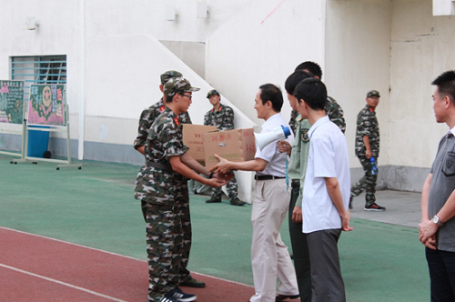 ”)党委书记何立新、院长戚承志、副院长韩淼、党委副书记车晶波来到大兴校区西操场看望并慰问正在军训的2016级土木学子。
