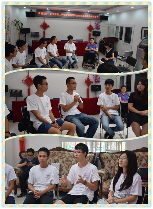 大学生社会实践基地牌匾。而后,李楠老师结合个人经历从阳光助残志愿服务理念、他们的以往经验以及此次志愿服务的内容对同学们进行了讲解培训。最后,同学们针对李楠老师的讲解内容进行了现场体验环节。