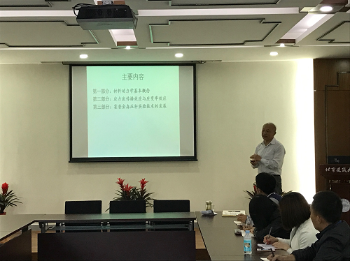 姜锡权教授首先介绍了传统材料力学与教材材料力学的区别,并以此为出发点对材料力学及材料动力学的基本概念和各类方程进行了讲解。然后对于材料动力学方面,讲述了惯性效应导致的应力波的产生传播问题和热活化机制与应变率效应,讲解从基础的应力波概念到波动方程的建立,以及应变率效应的产生原因。最后介绍了霍普金森杆实验装置,包括压杆、拉杆、扭杆等,讲述了霍普金森杆的发展历史以及未来的发展趋势。姜锡权教授所表现出的严谨的治学态度、踏实的理论基础给我校师生留下了深刻的印象,大家都表示收获很大。