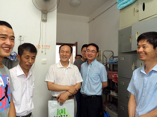 领导们随行为实习基地的师生带去了慰问品,并走访了学生宿舍,亲切慰问伤病和少数民族学生。最后与基地师生进行了深入地交流。