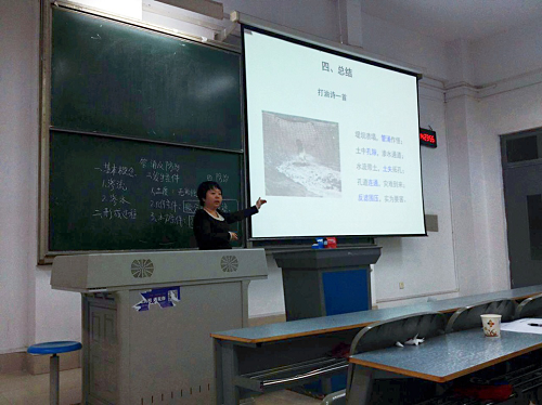 在青年教师讲课大赛中,要求讲授城地专业的主干课内容,章节任选,低端影视 彭丽云老师巾帼不让须眉,主讲《土力学》课程渗流章节中的管涌及防治。她在讲课过程中,注重基础理论,并适时穿插与实际应用相结合的案例,最后的课堂小结中,更是以一首幽默风趣的打油诗贯穿整节课的知识点,最终她以总分第三名的成绩获得讲课大赛一等奖。