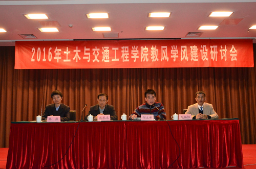 之后由院长戚承志做题为《继往开来 勇于进取 建设一流土木交通工程学科》的专题报告。
