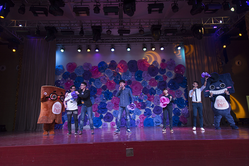吉祥物——“方方”和“圆圆”,也首次登台,萌翻全场,和老师们一起在歌声中亮相。