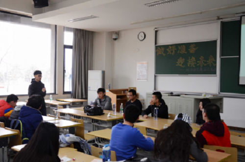 首先发言的是2012级材班就业骨干张宏月,他分享去年找工作的经历,为大家分享对就业的看法。张学长先简单介绍了12级材班毕业后的情况,告诉13级同学们无论工作,考研,还是就业,一定要早做打算。“好工作不是靠等来的,是靠自己一步一步通过实习经历,课余生活的历练争取来的。比如,准备就业的同学一定要好好把握大三暑假,不能放过这次实习的黄金时间。因为只有通过实习,才能将书本中的知识带到实践中,让你对书本的知识有更深的感悟”。