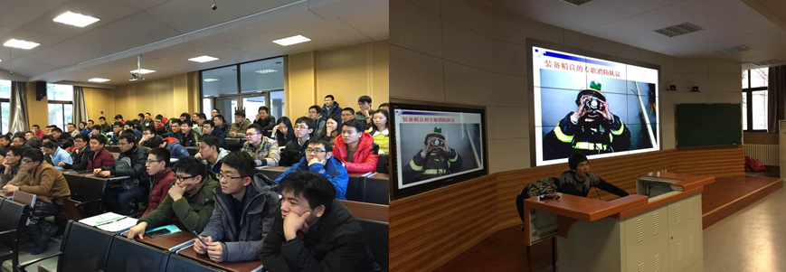 邀请北京市房山区消防支队李海龙警官为300余名研究生开展消防安全知识讲座。李海龙警官具有7年消防经验,也是一名经历火海的英雄。他所展示的火灾现场照片给学生们带来了视觉上的冲击,带来了心灵上的震撼。他所带来的科学防火、救火、逃生的知识也使得学生受益匪浅;利用好微信平台的网络教育功能,是学院一直在思想政治教育中的有效平台,此次学院利用微信平台传播广、速度快等特点,连续推出了三期网上安全教育工作,在学生中受到了极大关注。