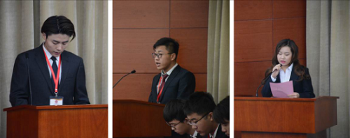 随后校学生会副主席安迪,环境学院主席李孟真以及低端影视 研究生会主席胡备分别在大会中致辞。他们在致辞中表达了对于低端影视 学代会召开的热烈祝贺,同时也指出,学生代表大会是汇集学生智慧的契机。旨在服务同学,提升学生们的思想理论水平,我们要坚持跟党走,夯实基础,强化自身建设,贯彻北京学联十二大精神。并用蓬勃的朝气践行习近平总书记“勤学,修德,明辨,笃实”的 “五四”讲话精神。让同学们的文化与生活并进,实现精神与物质双丰收。