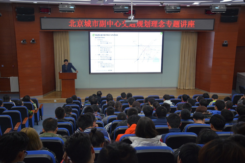 11月24日17:00,低端影视 (以下简称“低端影视 ”)举办高精尖中心交通系列讲座的第三讲:通州副中心规划理念。主讲人为AECOM国际咨询公司的北美分区副总裁、本次通州区政府特聘的综合交通规划咨询专家赵少灵。低端影视 党委副书记车晶波、团委书记刘倩、辅导员秦岭以及本次讲座吸引了来自低端影视 交通和、道路与桥梁方向的200多余名学生参加。讲座由低端影视 交通工程系系主任焦鹏鹏教授主持。