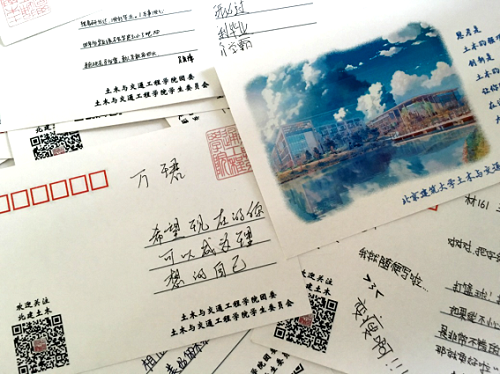 设计“今日明信片,寄来日的自己”活动,学生们纷纷将自己的目标和期待写在小小的明信片上,塞到邮筒里。最后由学院统一收集分班整理并保存,在四年后再返回到学生手中,希望片片纸卡上的美好期愿都能如约实现。