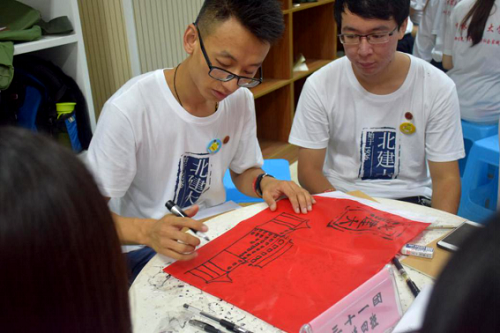 作为土木专业的学生,我们班的口号是“土承天下,木载苍穹”,班歌是改编版《五环之歌》,幽默的歌词、轻松的旋律,配上大家生动的肢体动作,博得阵阵掌声。