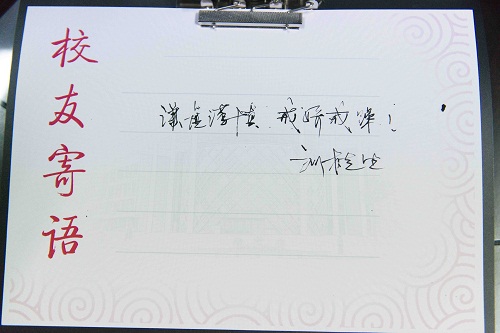 学生代表的采访,并寄语“谦虚谨慎、戒骄戒躁”送给学弟学妹。参观的过程中,刘桂生教授还得到了校党委书记王建中、校纪委书记何志洪老师的亲切接待。