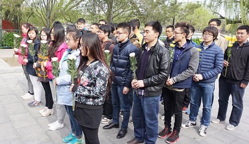的辅导员带领学生党员和入党积极分子共40人参加了 “清明祭英烈,情洒陶然亭”活动,重温革命烈士光辉事迹。1921年五四运动时,李大钊、毛泽东、周恩来等老一辈革命家在陶然亭慈悲庵进行革命活动,陶然亭成为北京的一处具有纪念意义的革命遗址,其中高君宇烈士之墓就坐落于此。