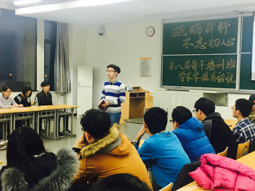 为主办单位的北京市建筑设计结构竞赛为载体,李雨航学长从自身准备比赛的经验出发,向我们切实介绍同时兼顾科技赛事、学习生活的方法;其次,他还向在座的各位骨干们建议道:“学习和生活永远是主线,团学工作、活动只是为我们锦上添花的东西。当学生工作、科技比赛、日常生活交叉重叠时,以一个积极的态度努力寻求一个平衡点,让学习与工作相辅相成,磨砺自己的心性,唯有如此,我们才能在未来的道路上走得更加坚定。”
