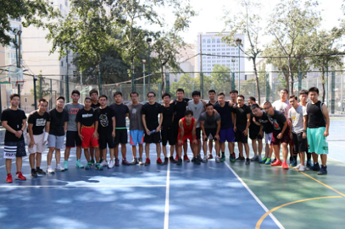 研一“新生队”与研三的“师兄队”。首先,两队球员向裁判致意,并在裁判带领下走向比赛场地。随着哨声响起,比赛开始,篮球健儿们采取主动出击,以矫健的身姿和熟练的动作迅速传球,直逼篮板。双方对员迅速进入比赛状态,各方都表现出了高超的篮球技术和良好的团队意识。