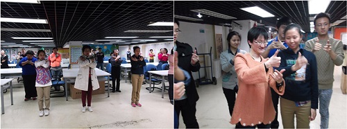 而后,结构工程研究生党支部党员与职康中心的同学们通过才艺表演完成了团队间的沟通认识,党员在职康中心同学的带领下,进行了《最好的未来》手语歌曲学习,让党员与职康中心同学之间的认识加深。在随后的活动中,本支部党员与职康中心的同学们进行了活动分组,各小组独立完成了“生活常见交通标志、安全常识和日常英文单词”的学习,学习过程中,职康中心的同学学习热情极高,很好地完成了相关知识学习,在阶段性学习之后,本支部组织了竞技抢答环节,各小组代表在趣味比赛中答题踊跃,活动氛围浓郁热烈。其后,两个团队之间还进行了蒙眼游戏、手工活动等实践,本支部党员与职康中心同学一同完成了“中国结”的手工制作,充分表现了我支部党员与残联中心同学之间心连心、团结幸福的美好寓意,寄托了本支部党员对残联中心同学早日康复的美好心愿。