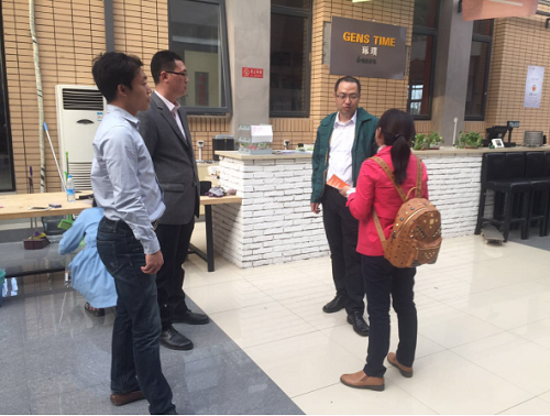 随后,我校一行四人在天津科技大学团委副书记许涛的陪同下,参观了天科大与第三方企业合作创办的玑瑛青年创新公社主题实践区,校方整合资源为学生搭建了优质的创新创业平台。