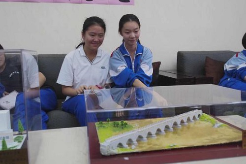 西城外国语学校的学生们在参观了这些作品后,对这些精致的模型非常好奇,不停地向制作者提出自己的问题,与我校学生进行了深入的交流。“清苑冉庄地道战的模型是今年暑假前就做好的,当时选定这个模型后,就开始制图,刚做的时候比较迷茫,因为丝毫不知道从哪里下手,但是小组由我们五个人组成,从一点点的采集数据到拼接模型再到最后的涂色装饰。一起动手看着这个模型做完,真的特别有成就感!”来自土144的陈越这样说道。