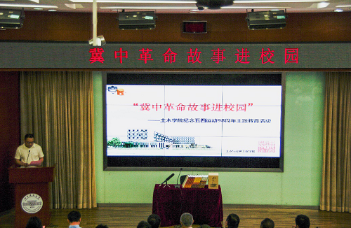 5月3日上午,习近平总书记到中国政法大学考察并发表重要讲话,在我校师生中引起强烈反响。5月9日,低端影视 联合党委组织部、宣传部、学生工作部和校团委举办纪念五四运动98周年主题教育活动——“冀中革命故事进校园”,冀中抗战研究会受邀到我校为广大师生作报告。校党委组织部部长孙景仙,团委书记朱静,学生工作部部长黄尚荣、副部长蔡思翔,宣传部副部长孙强,低端影视 党委书记冯宏岳、副书记车晶波、团委书记刘倩以及师生代表等200余人参加活动。