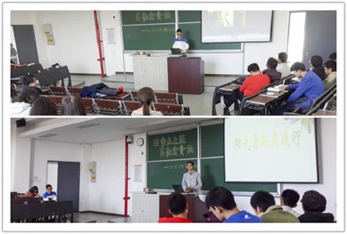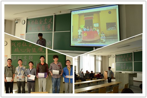 暑期社会实践宣讲团中“爱心奉献小队”的宣讲人苏海龙。从演讲中大家感受到了大学生志愿者的力量,感受到了作为大学生的我们是否都可以从自己开始,为那些需要帮助的人做一点事。到志愿者队伍中去,体验生活,传递真诚,播种爱心,收获感动。同时,此次的团日活动还邀请到了班级导师刘飞老师,刘飞老师对于班级上学期的成绩进行了点评和分析,奖励学习成绩进步突出的同学,着实为上学期学习有所松懈的同学上紧了弦儿。