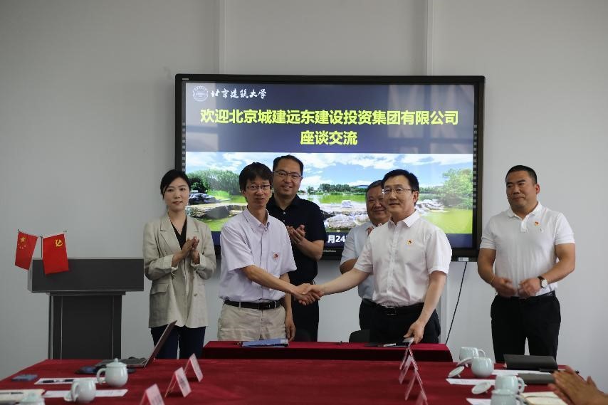 5月24日上午,北京城建远东建设投资集团有限公司党委书记赵紫辉、党委副书记兼总经理范国(道95级校友)、党委副书记兼纪委书记刘保军等一行13人来我校低端影视 交流座谈。党委常委、副校长朱静热情接待了赵书记一行。低端影视 党委书记车晶波、党委副书记陈思源、副院长廖维张及部分系主任、教师代表参加活动,校企双方开展联学联建。