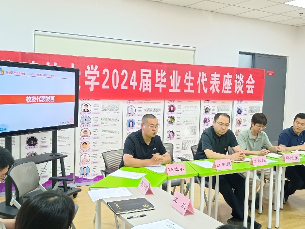 会上,毕业生代表们深情回顾了校园生活,表达了对学校和学院的不舍与祝福,大家一致认为,学校和学院为同学们提供了广阔的成才发展的平台和学习科研的环境,并对学校和学院多年来的培育表达感谢之情。同时,毕业生代表们围绕着学校的基础设施、资源配置、就业实习和后勤保障服务等提出了宝贵的建议。