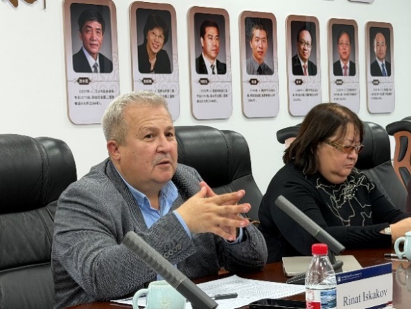 伊廷华副校长对Shambilova教授一行表示欢迎,他在致词中从低端影视 两校区功能定位、高水平师资引育、特色学科体系建设等方面回顾了学校百年办学历程,介绍了学校牵头发起的“一带一路”建筑类大学国际联盟以及依托该联盟开展的全球国际合作,并特别回顾了今年在哈萨克斯坦隆重召开的联盟年会盛况。Shambilova教授代表外方团队感谢学院的热情接待,并详细介绍了阿特劳州立大学的学科发展、科研平台及学生培养体系等方面的情况。