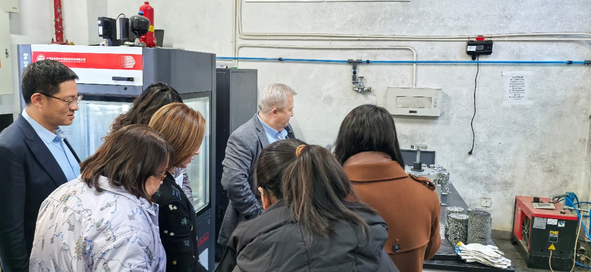 座谈会结束后,Shambilova教授团队一行在索智教授、金珊珊教授等带领下参观了学院的道路实验室,并对典型路面结构及新型绿色道路材料、前沿道路试验设备等进行了详细讲解。