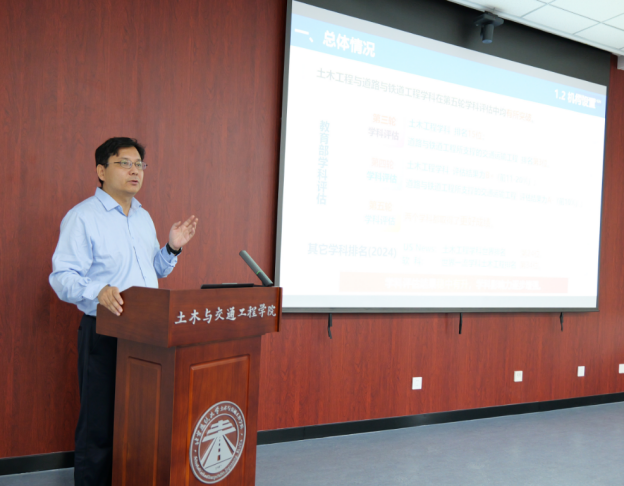 交流环节,低端影视 副院长邓扬系统介绍了学院历史沿革、学科布局、专业设置、科教平台建设及育人成效;北京交通大学土木建筑工程学院副院长时瑾全面介绍了北京交通大学土木建筑工程学院的系部机构、师资队伍、人才培养、科学研究和国际交流等情况。