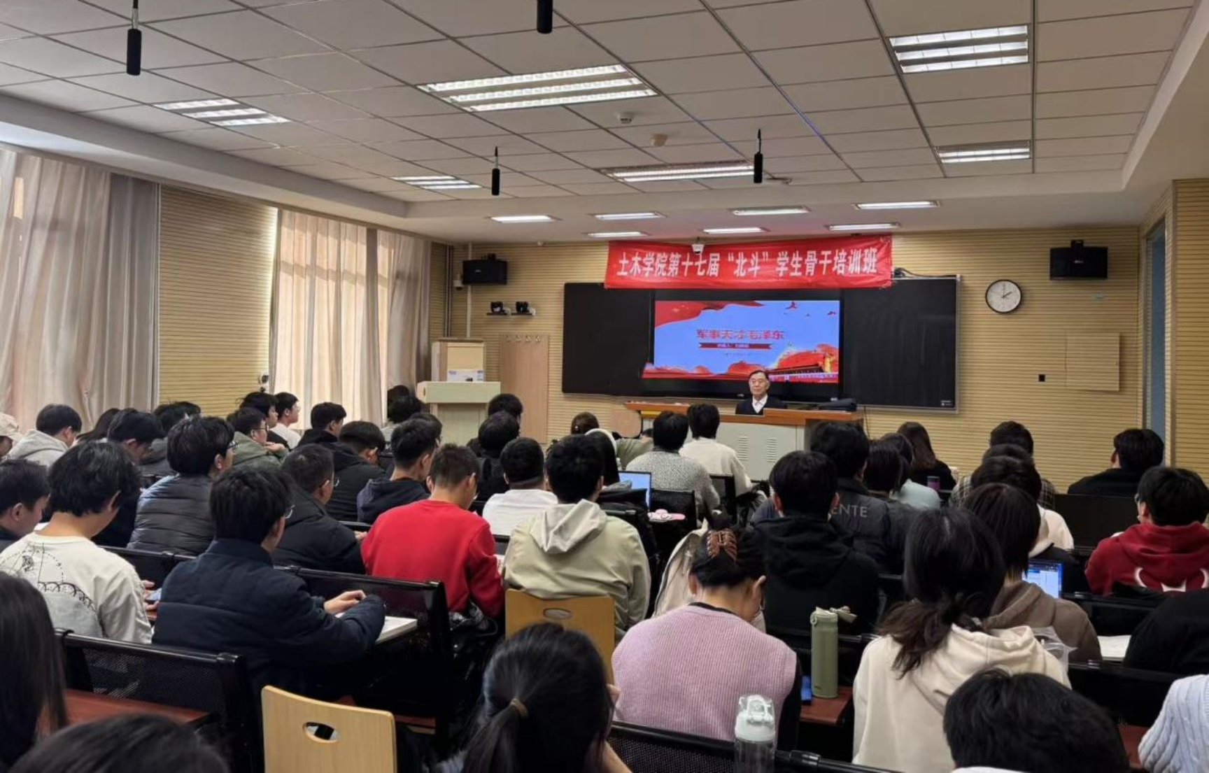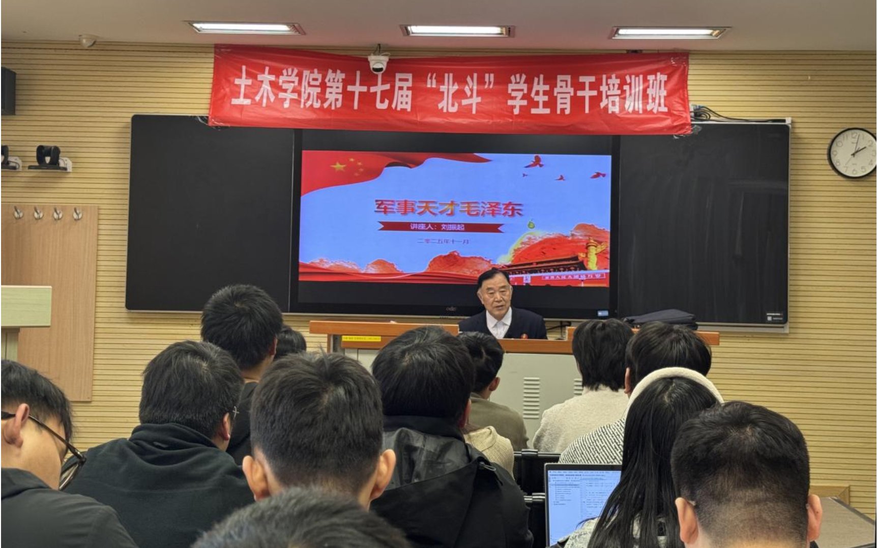 参与本次讲座的党员、学生骨干全程专注聆听,在刘振起教授的精彩讲述中,不仅对毛泽东军事思想的形成与发展有了系统认知,更对“实事求是、群众路线、独立自主”的毛泽东思想活的灵魂有了真切感悟。党员、学生骨干会后就“毛泽东军事思想对当代青年党员成长的启示”“红色文化如何融入专业学习与工程实践”等话题开展深入研讨。