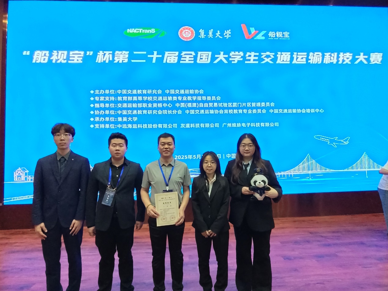 2025年5月23-25日,“船视宝”杯第二十届全国大学生交通运输科技大赛总决赛在集美大学举行。大赛由中国交通教育研究会、中国交通运输协会、教育部教学指导委员会联合主办,是国内办赛最早、等级最高、规模最大、影响最广的智慧交通权威型学术竞赛。本届共设置本科生、研究生、台港澳及智能航运4个主题赛道和14个分赛道,共吸引全国超百所高校的1232支队伍参赛,创历史规模最大;初赛淘汰率高至80%,仅剩246支队伍入围决赛;一等奖获奖比例仅为3.8%,即48支队伍,创历史获奖最难。