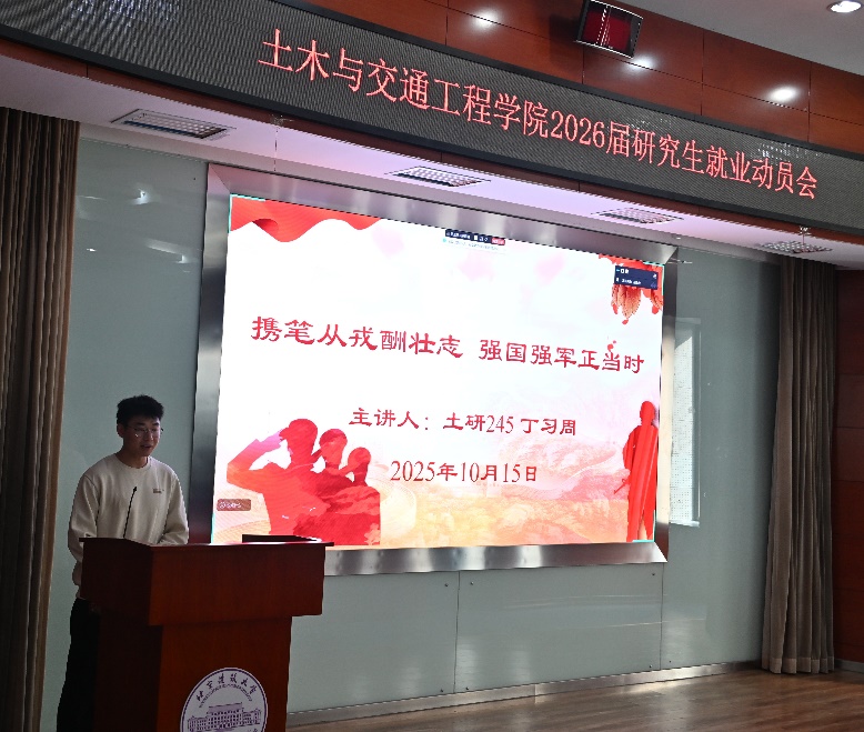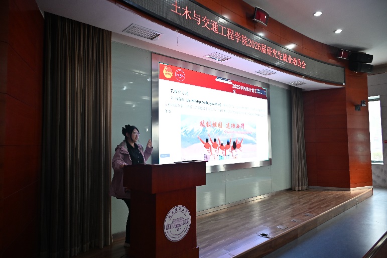 会上,团委书记刘梦瑶老师,大学生退役士兵土研245丁习周同学分别为毕业生讲解大学生“西部计划”、毕业生征兵入伍政策,帮助毕业生打开就业思路。